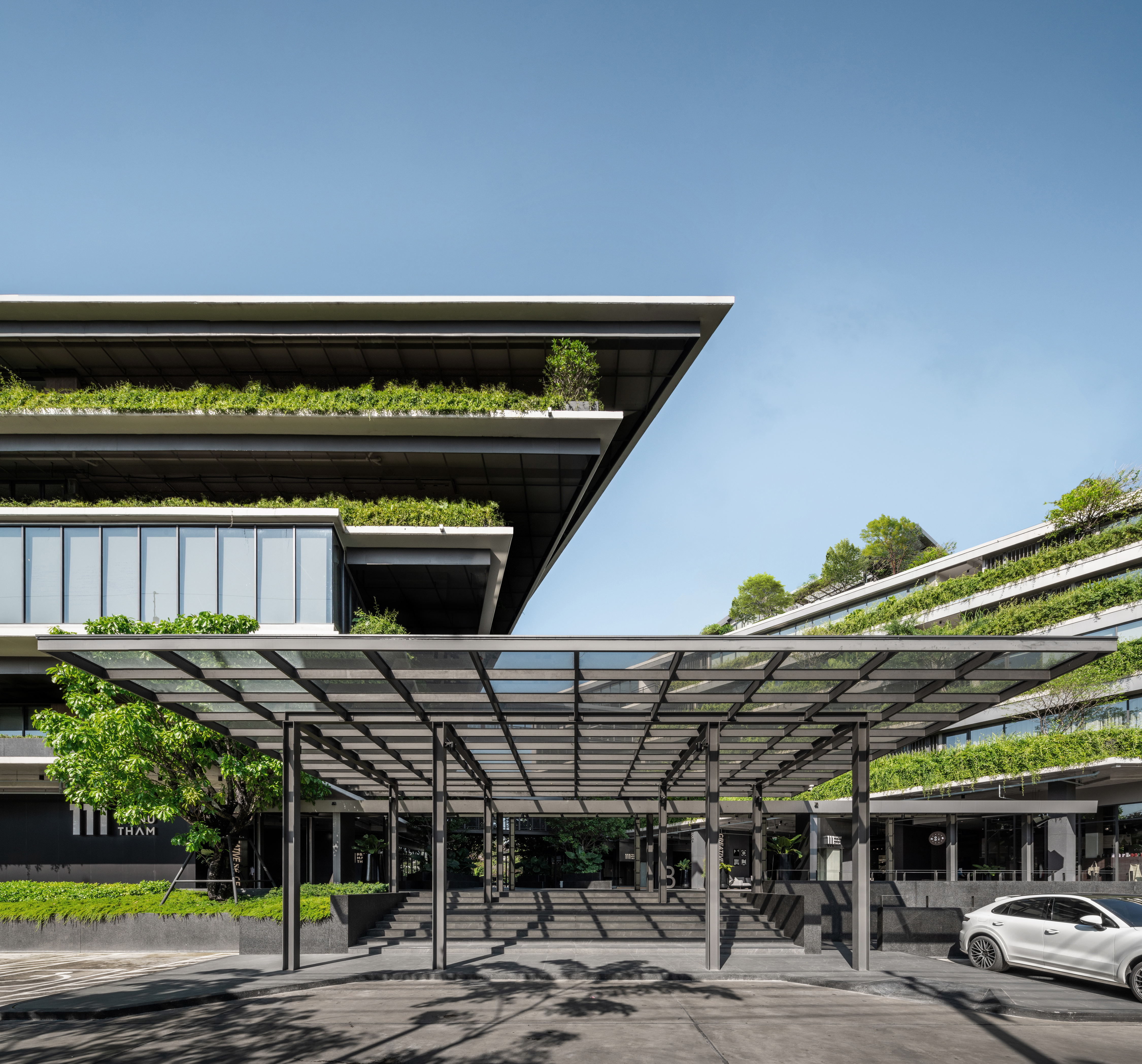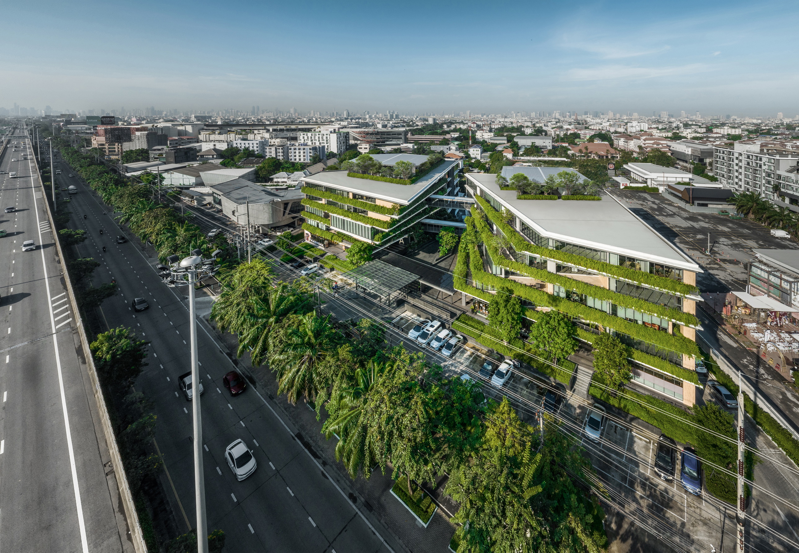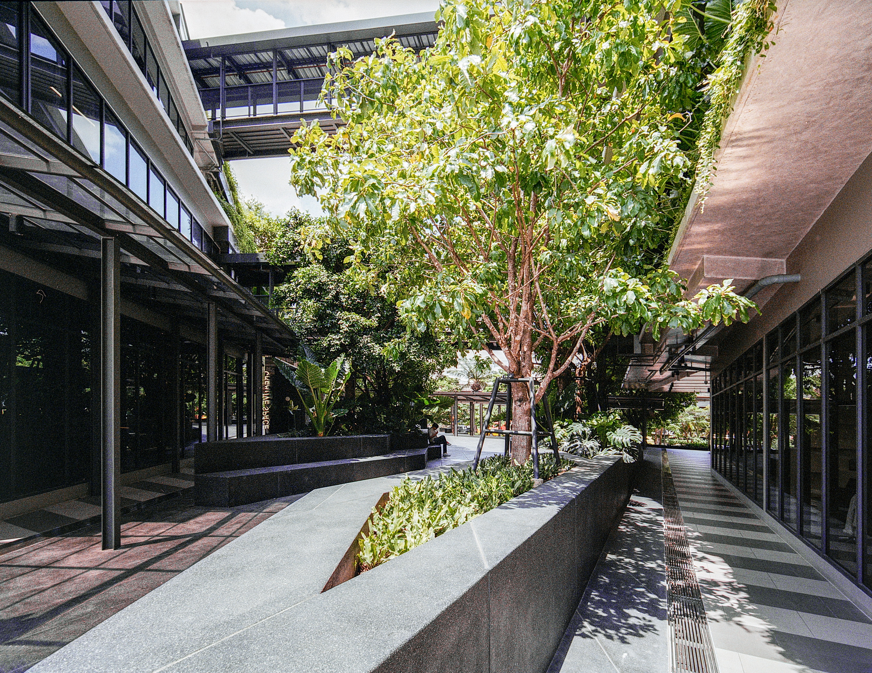 In a dense urban context where green area and spaces for leisure or recreation are scarce, the project seeks to bring nature into the office life in the areas for landscape within the tiered balconies that feature layers of green on the sheared triangular mass, pockets of green spaces within the semi-outdoor terraces and the outdoor public plaza that also acts as the central atrium and lobby. The shear cantilevered mass provides all-day shading to this large communal space, to encourage interaction and foster a sense of community with diverse tenants of this creative hub.