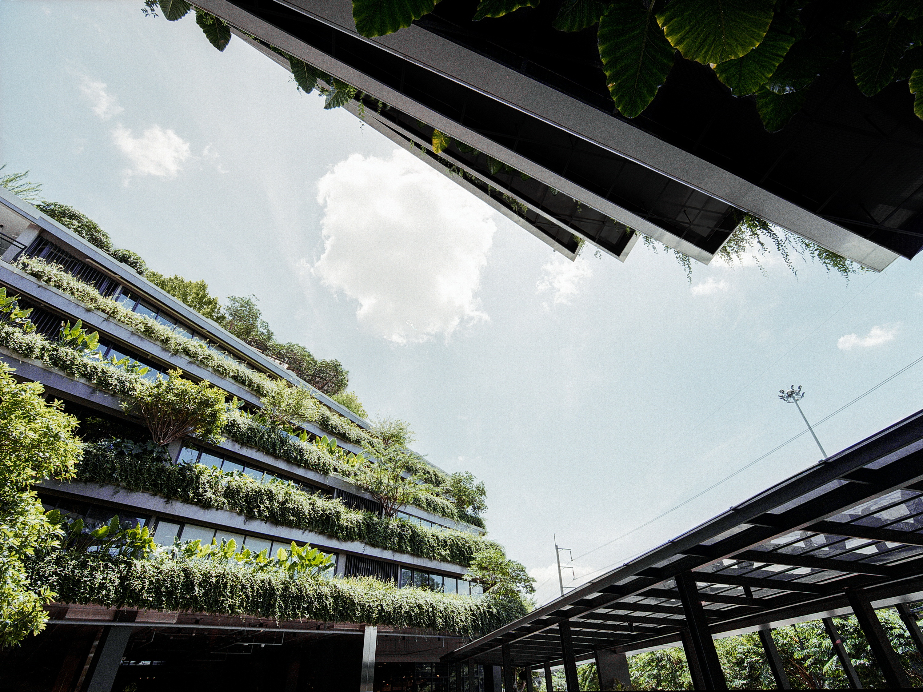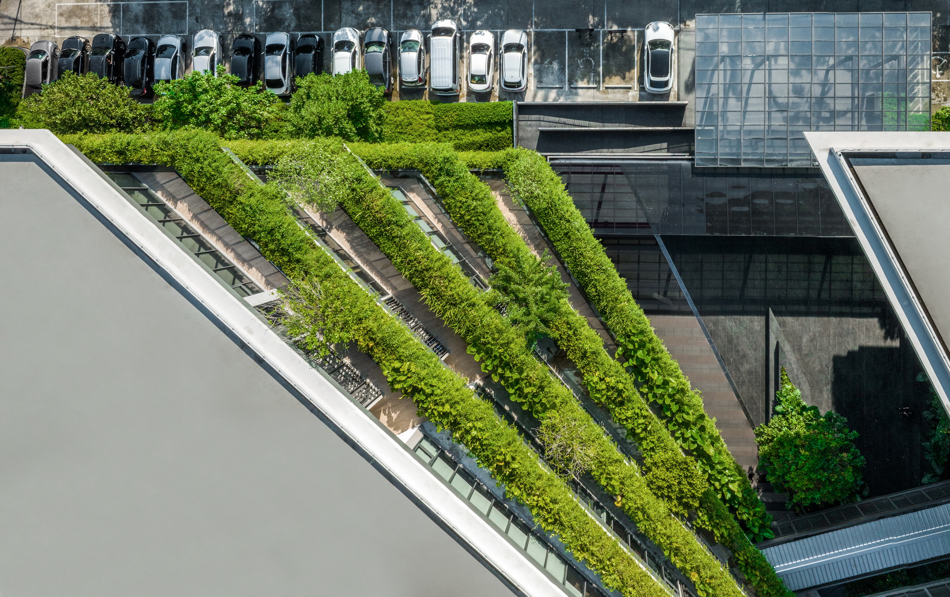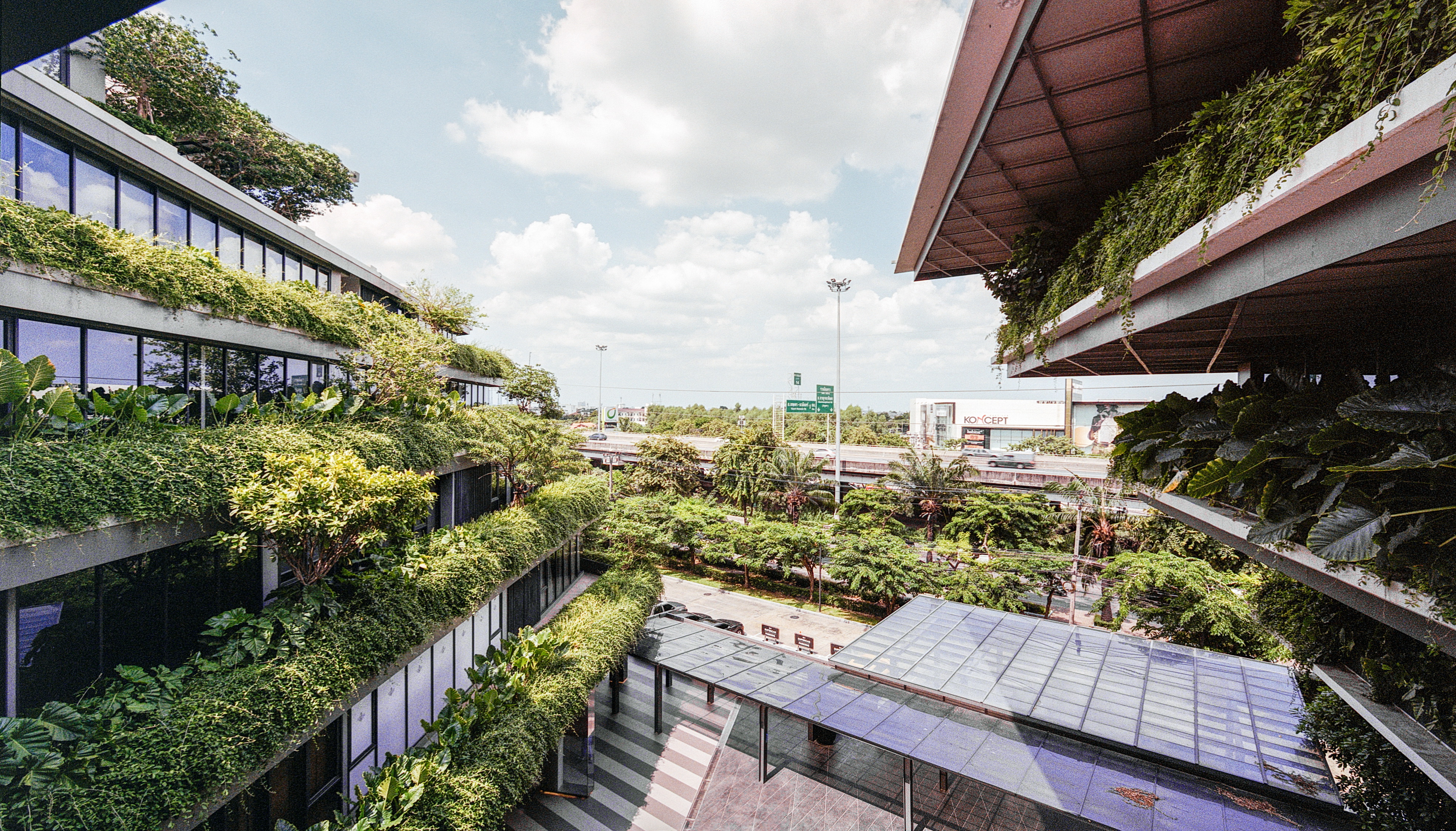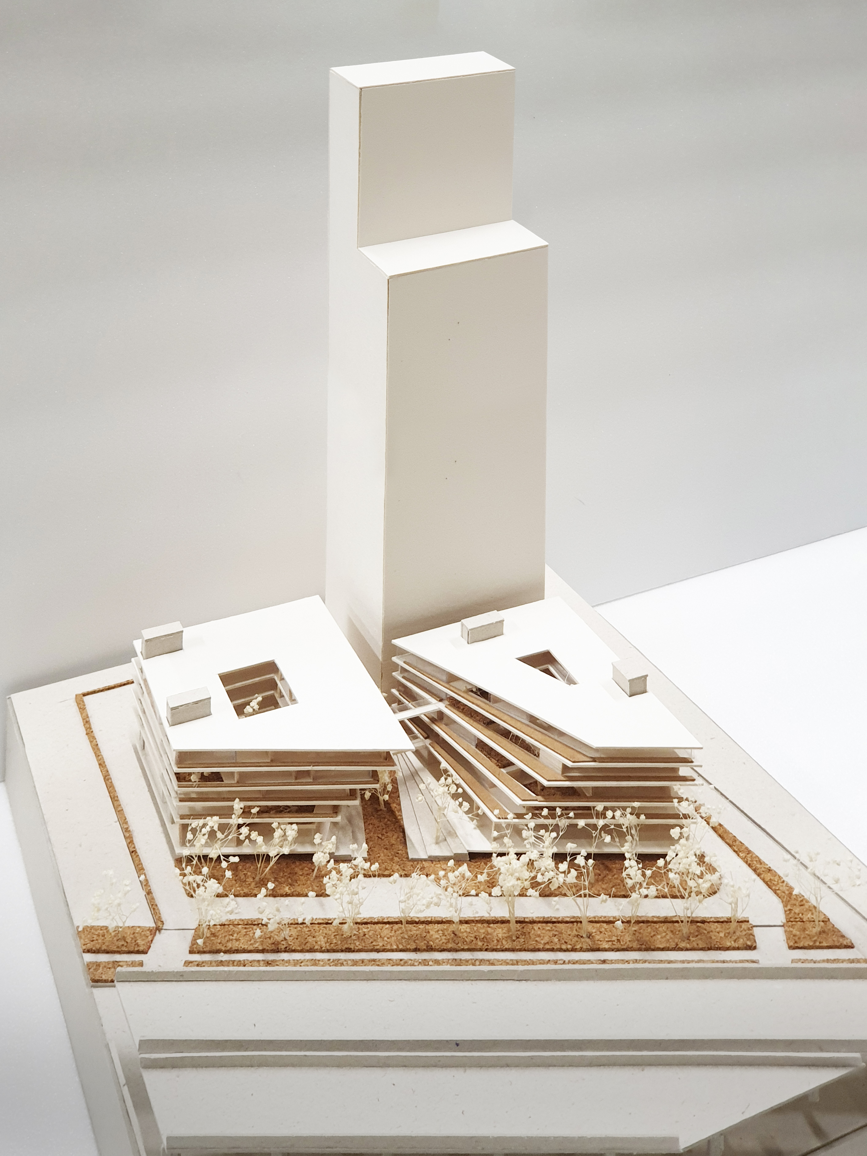 In a dense urban context where green area and spaces for leisure or recreation are scarce, the project seeks to bring nature into the office life in the areas for landscape within the tiered balconies that feature layers of green on the sheared triangular mass, pockets of green spaces within the semi-outdoor terraces and the outdoor public plaza that also acts as the central atrium and lobby. The shear cantilevered mass provides all-day shading to this large communal space, to encourage interaction and foster a sense of community with diverse tenants of this creative hub.