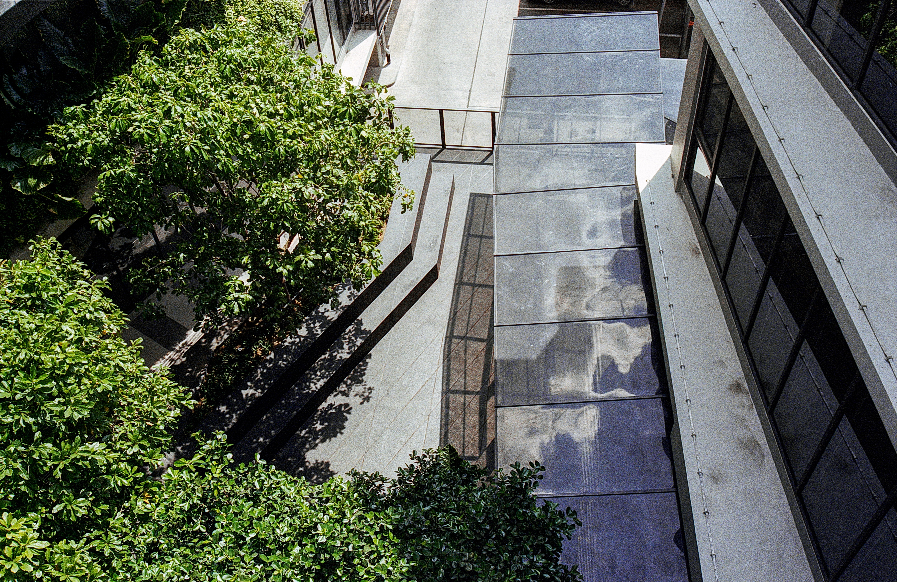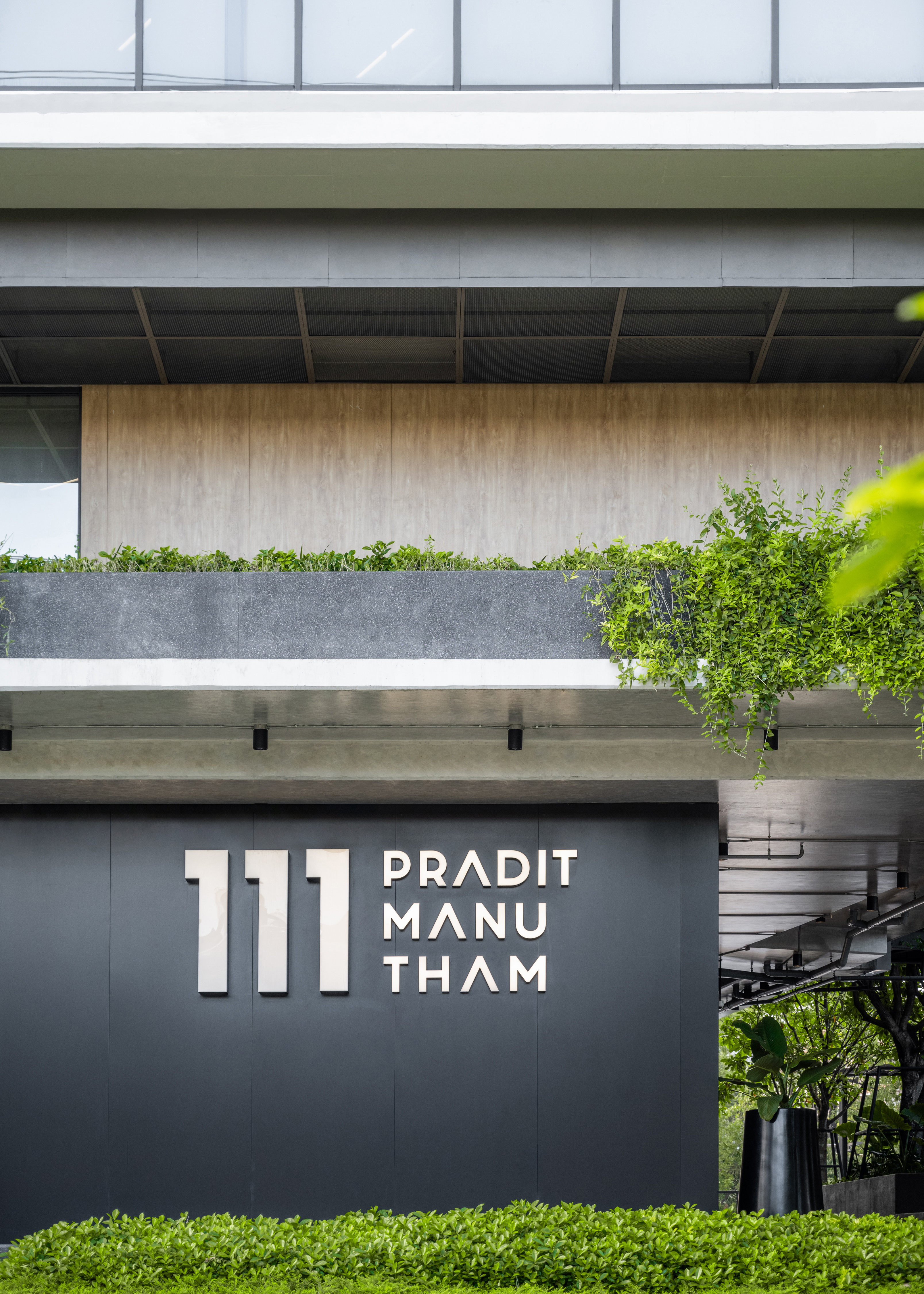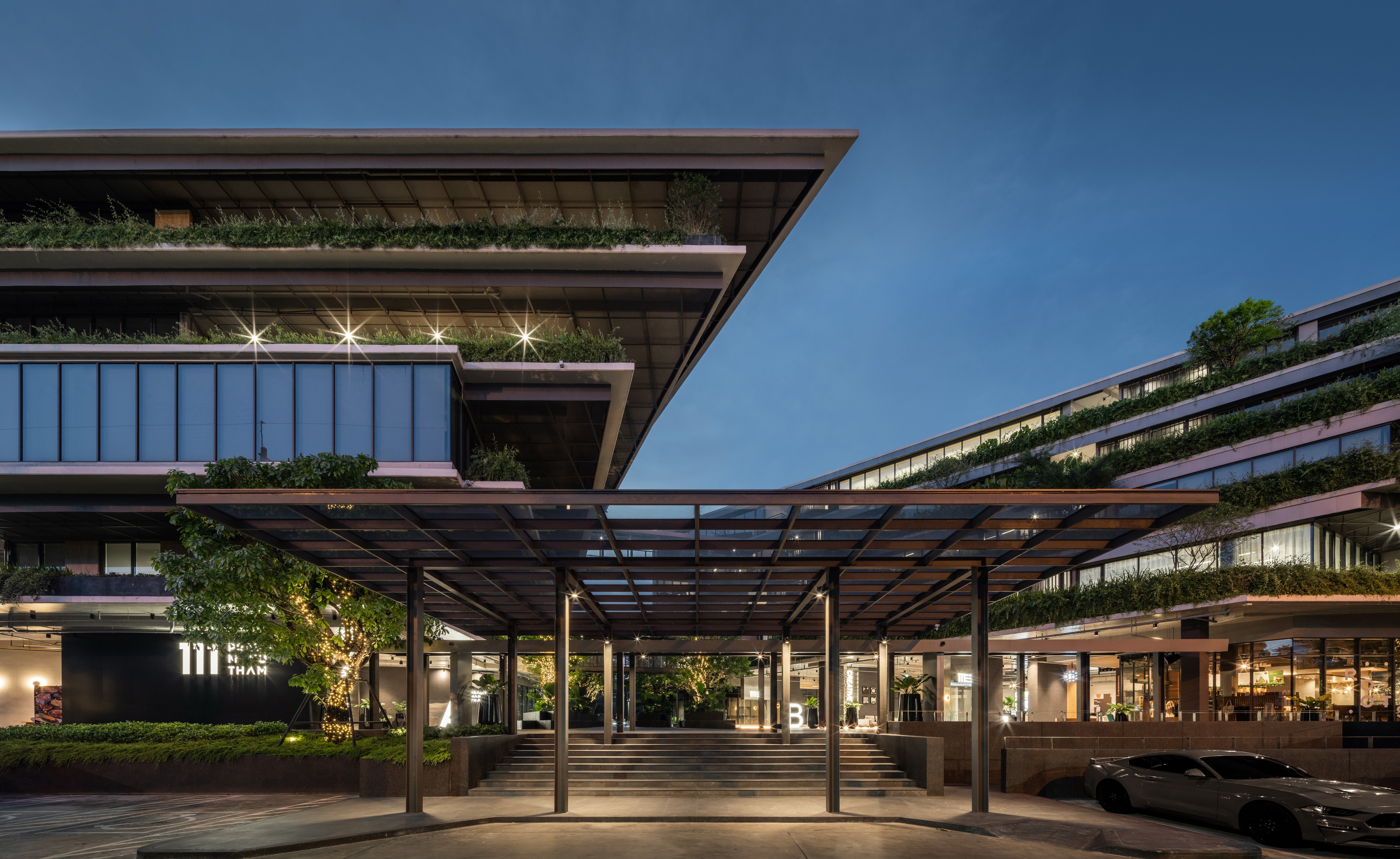 111 proposes a unique working environment integrating concepts of inspiration, collaboration, wellness and community within the office typology. In accordance with building regulations and zoning restrictions, the built area of the 20,000 square meters is bisected into two buildings with a spacious outdoor public plaza between the two masses. With its sheared form and a slash-cut that seemingly opens and separates the volumes into two, the plaza is sheltered by the 20-meter cantilevered mass that provides shade to this public multi-functional gathering space.