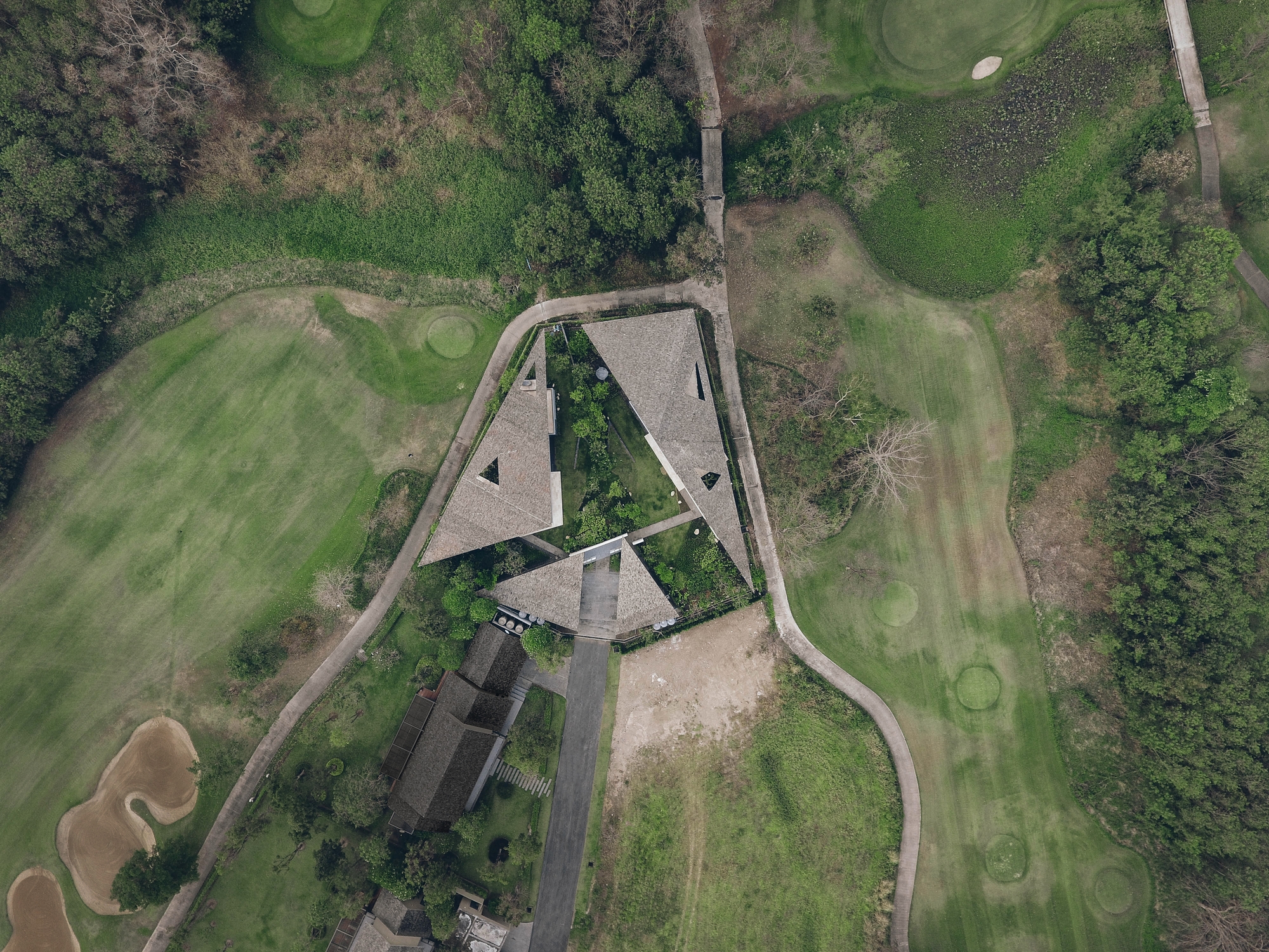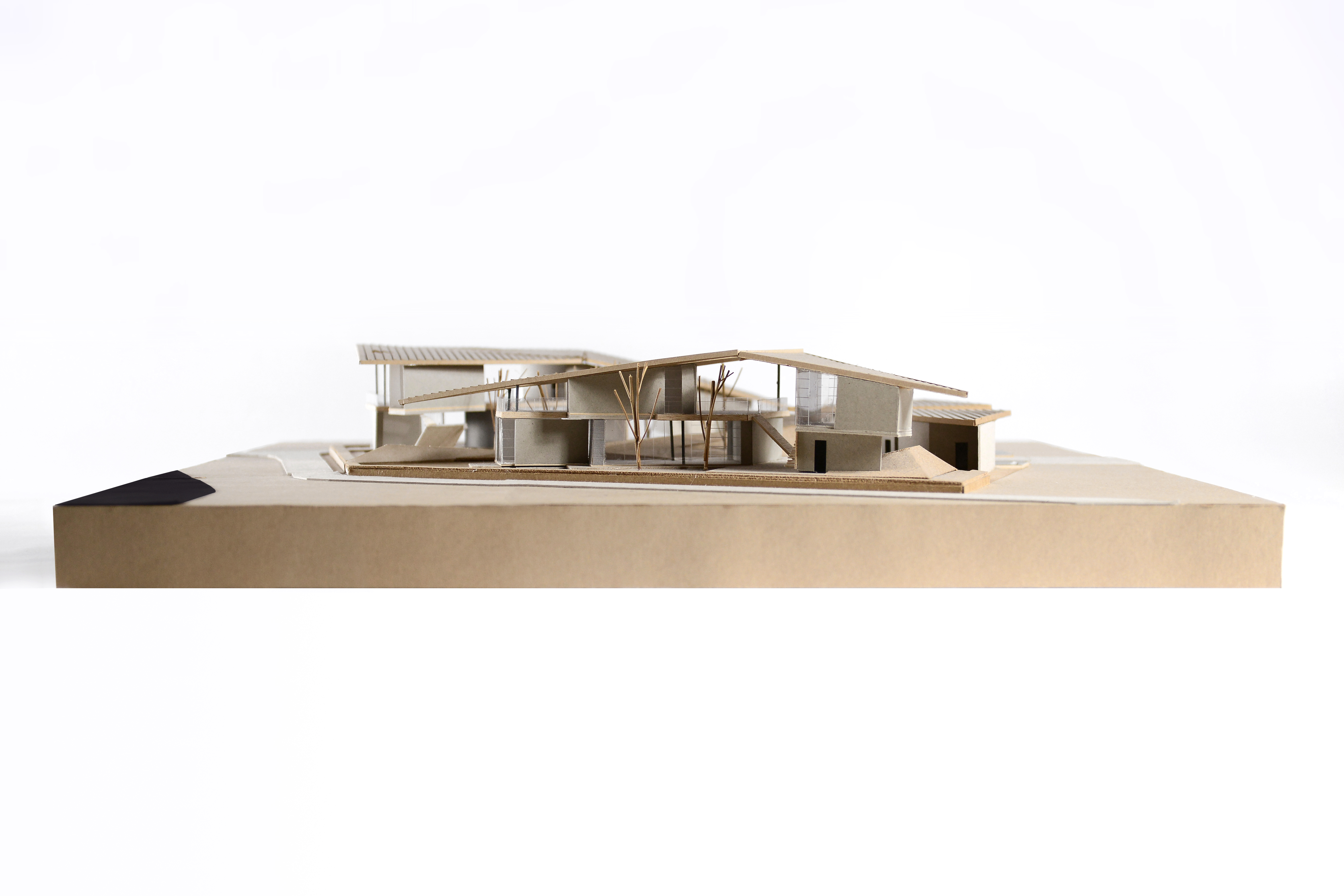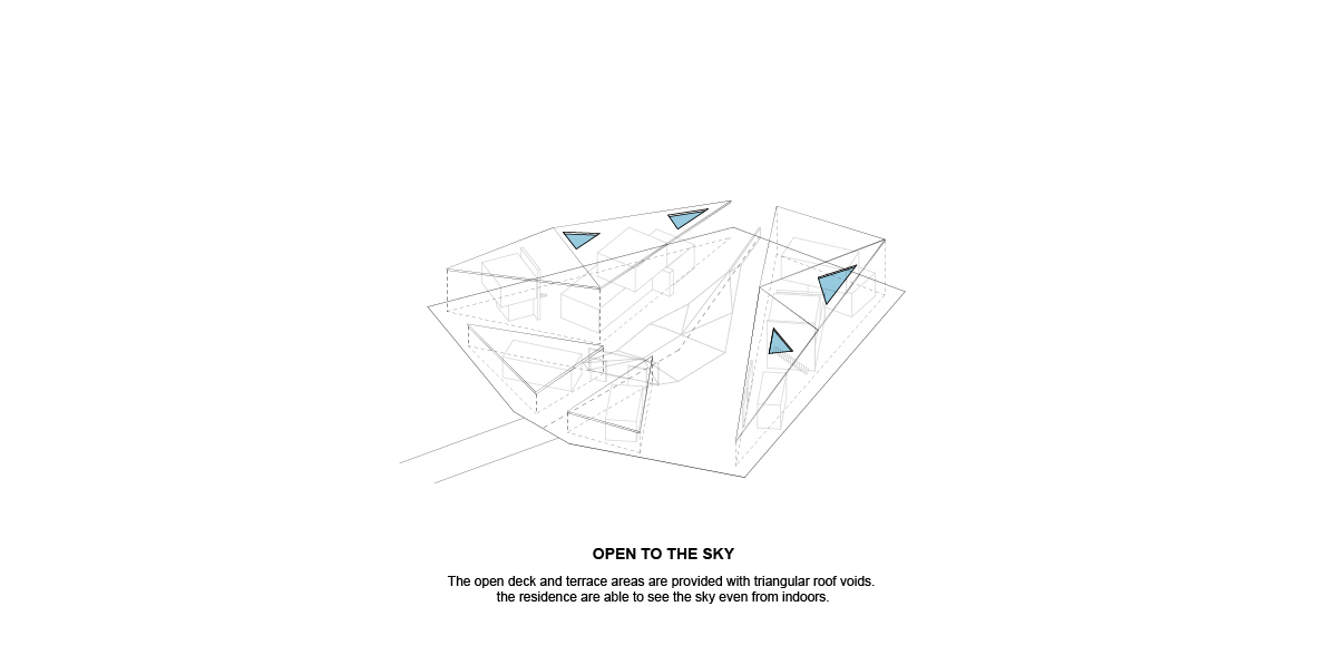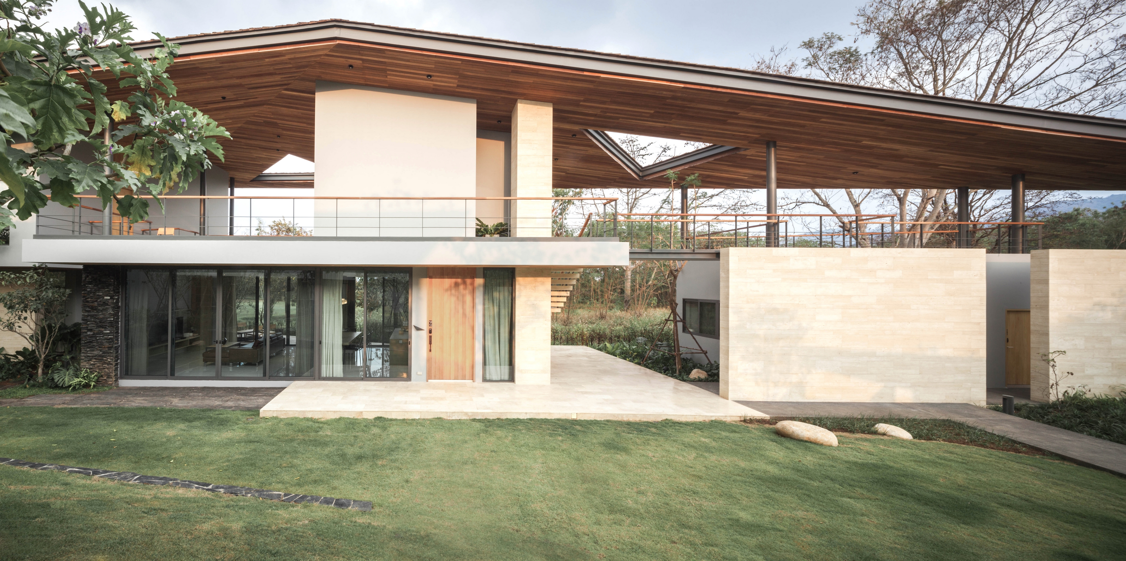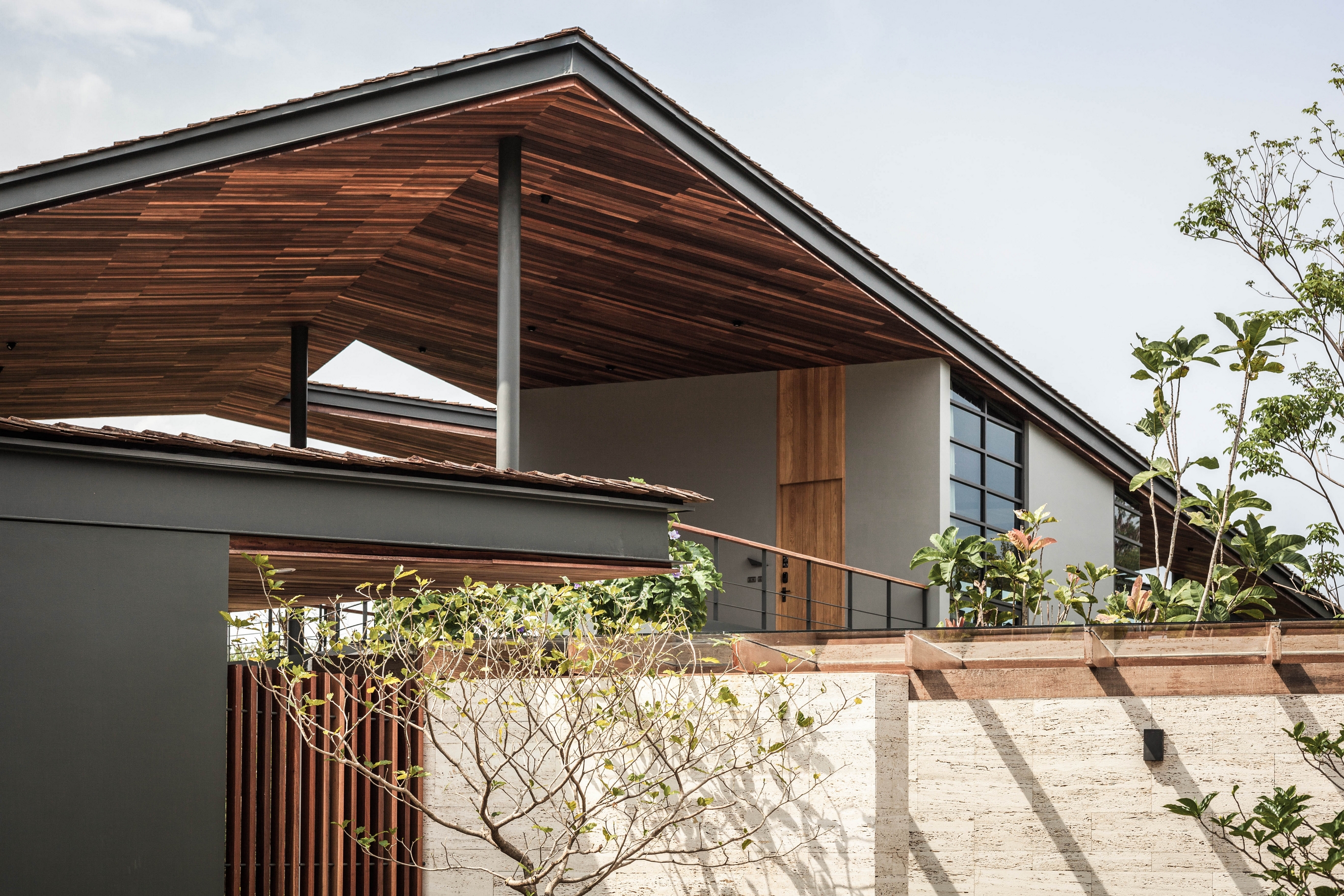 The triangular shaped roof becomes the character of the project; hovering above the masses, it gives coherence to the scattered forms and visually connect the programs. While its form resembles surrounding mountains, the roof feature triangular voids that create a lighter, more open feeling to the plane that appears to be gliding, hence the name Gliding Villa. Outdoor terraces below this expansive canopy become lively places for family gatherings; a space to talk, drink and eat together. This type of space is evident in traditional Thai homes, where terraced areas have various informal functions or are utilized as gathering space. We re-interpret such concepts with design conventions to integrate the architecture culturally, as well as formally, into the environment.