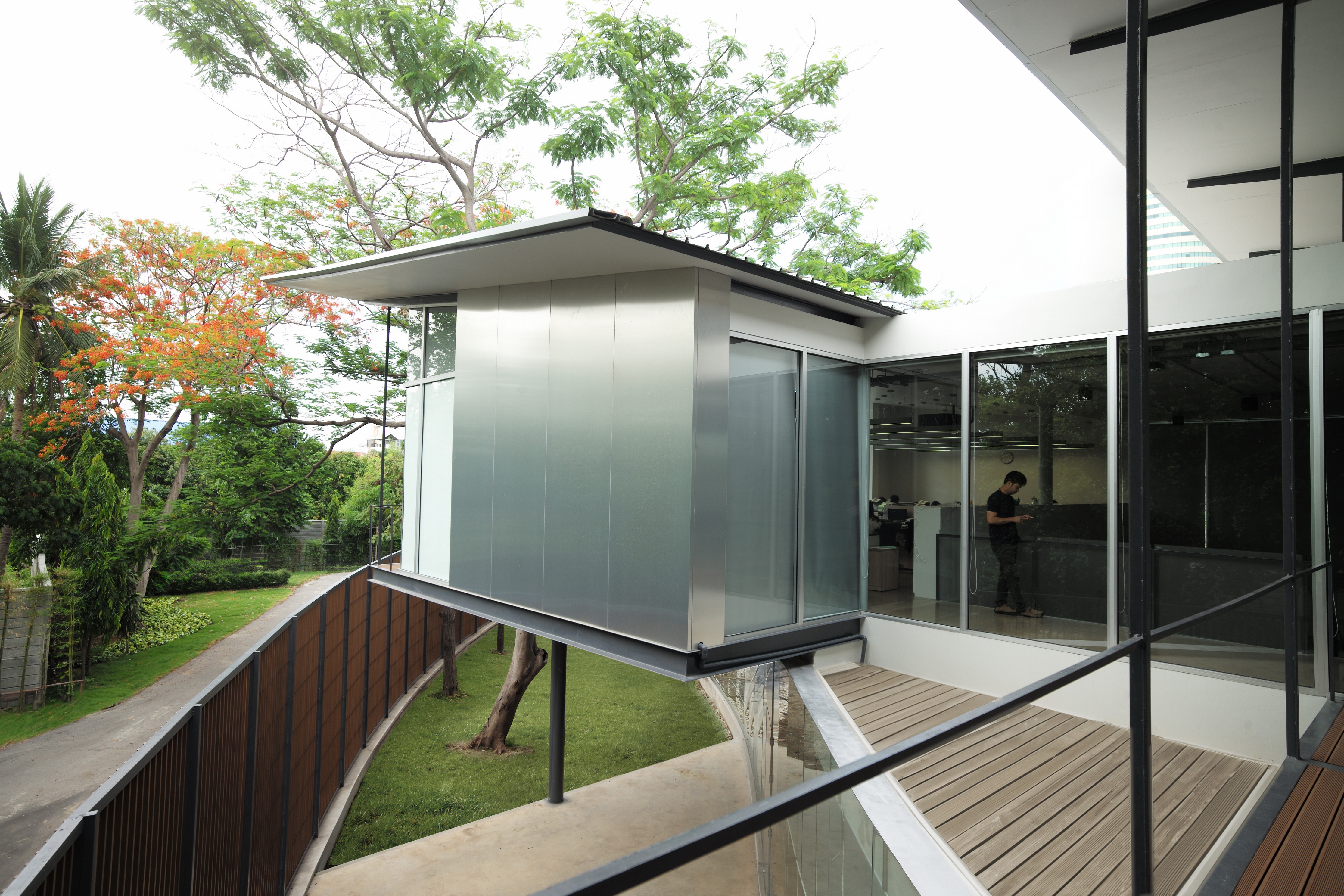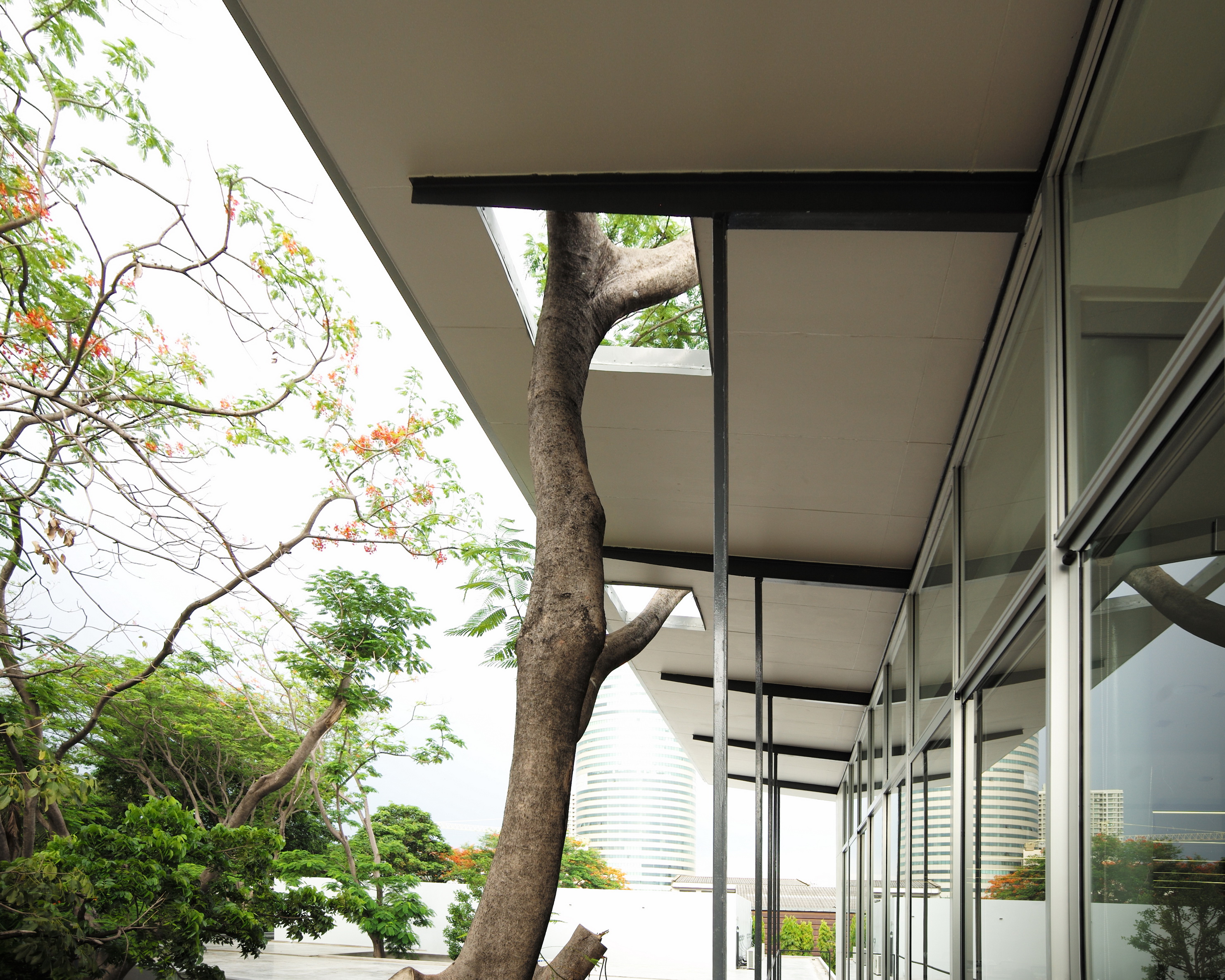 Trocadero Office is an office project consisting of working spaces, meeting rooms, cafe, watch repair center, and storage. As the main characters of the site are the irregular shape on its Eastern part and the Flamboyant trees that are scattering in it, the main idea for the project are to preserve the maximum number of trees and to solve the problem of the site’s shape.