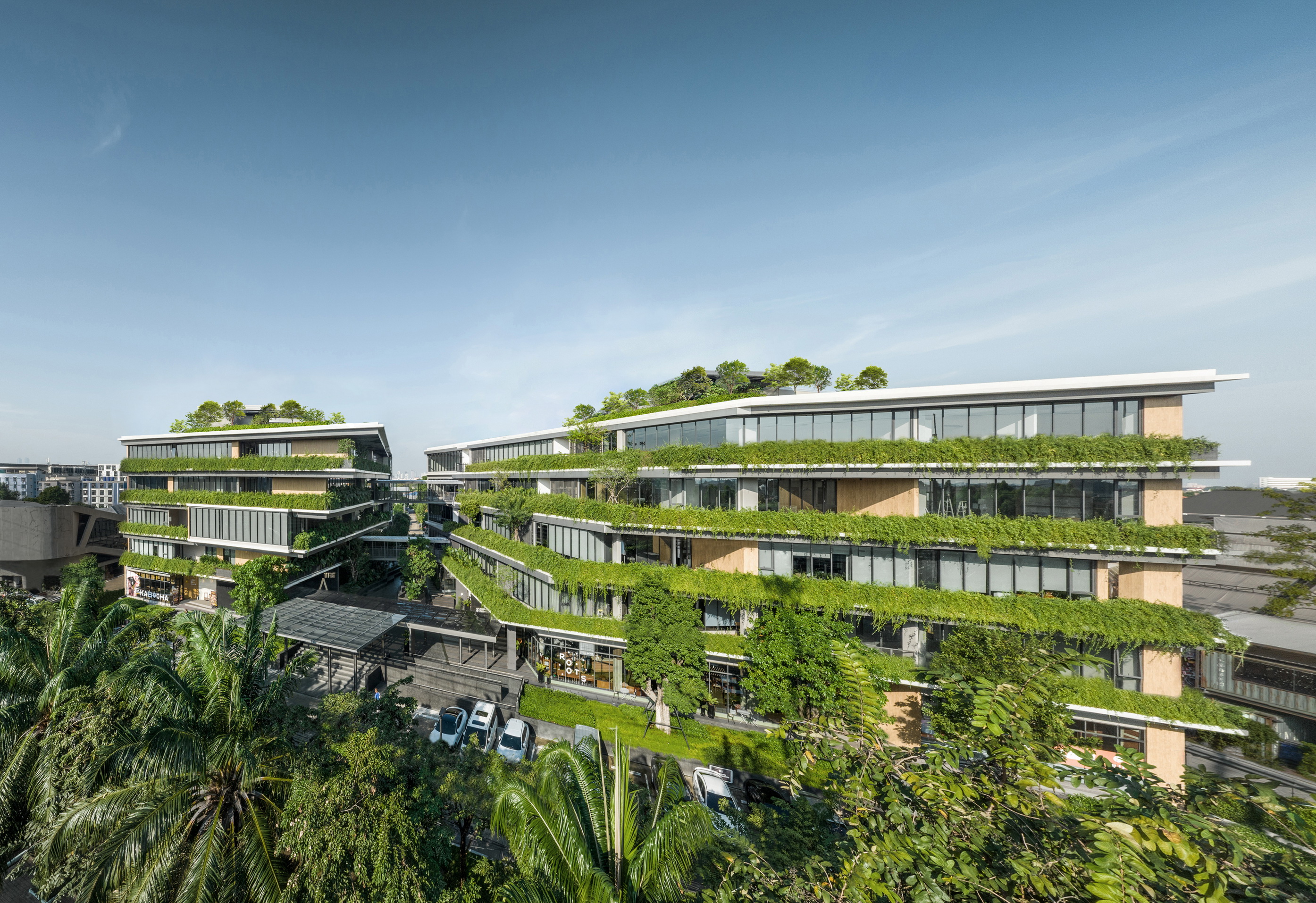 In a dense urban context where green area and spaces for leisure or recreation are scarce, the project seeks to bring nature into the office life in the areas for landscape within the tiered balconies that feature layers of green on the sheared triangular mass, pockets of green spaces within the semi-outdoor terraces and the outdoor public plaza that also acts as the central atrium and lobby. The shear cantilevered mass provides all-day shading to this large communal space, to encourage interaction and foster a sense of community with diverse tenants of this creative hub.