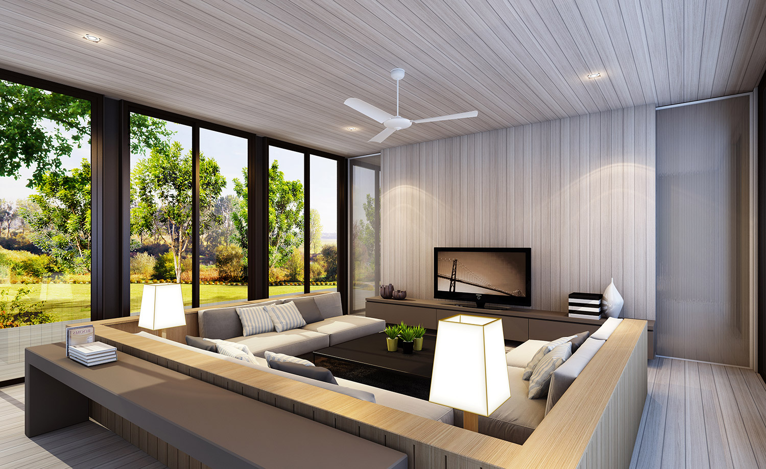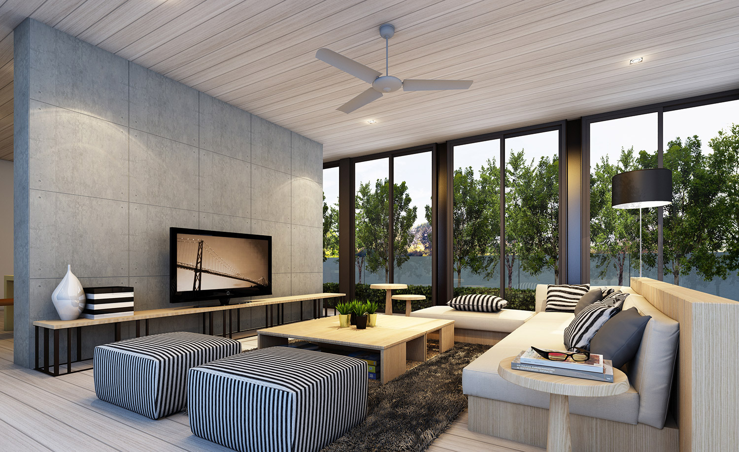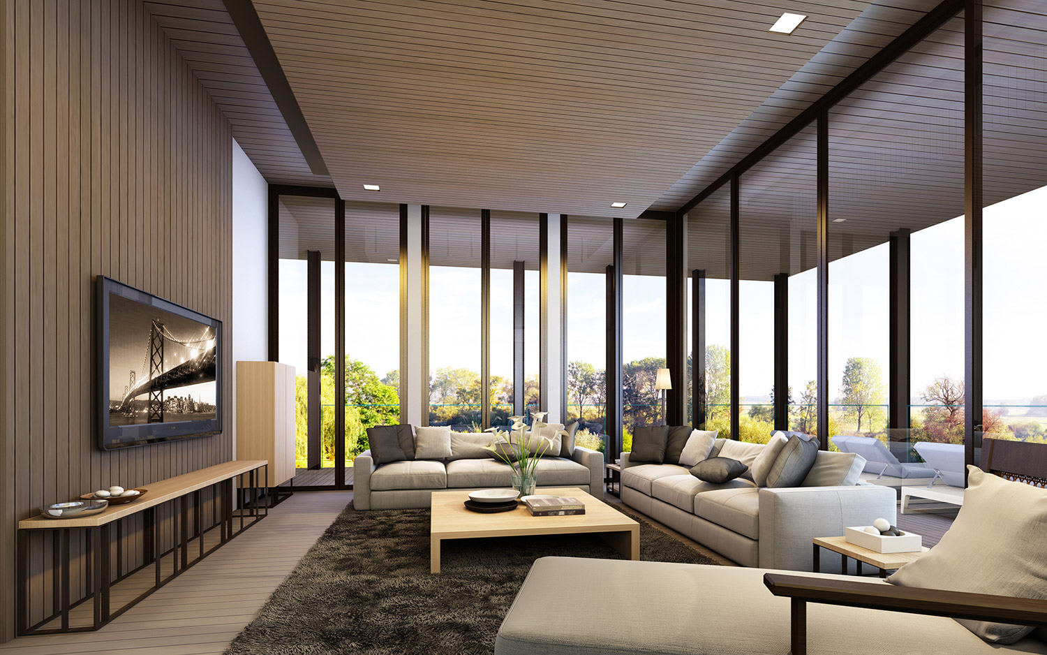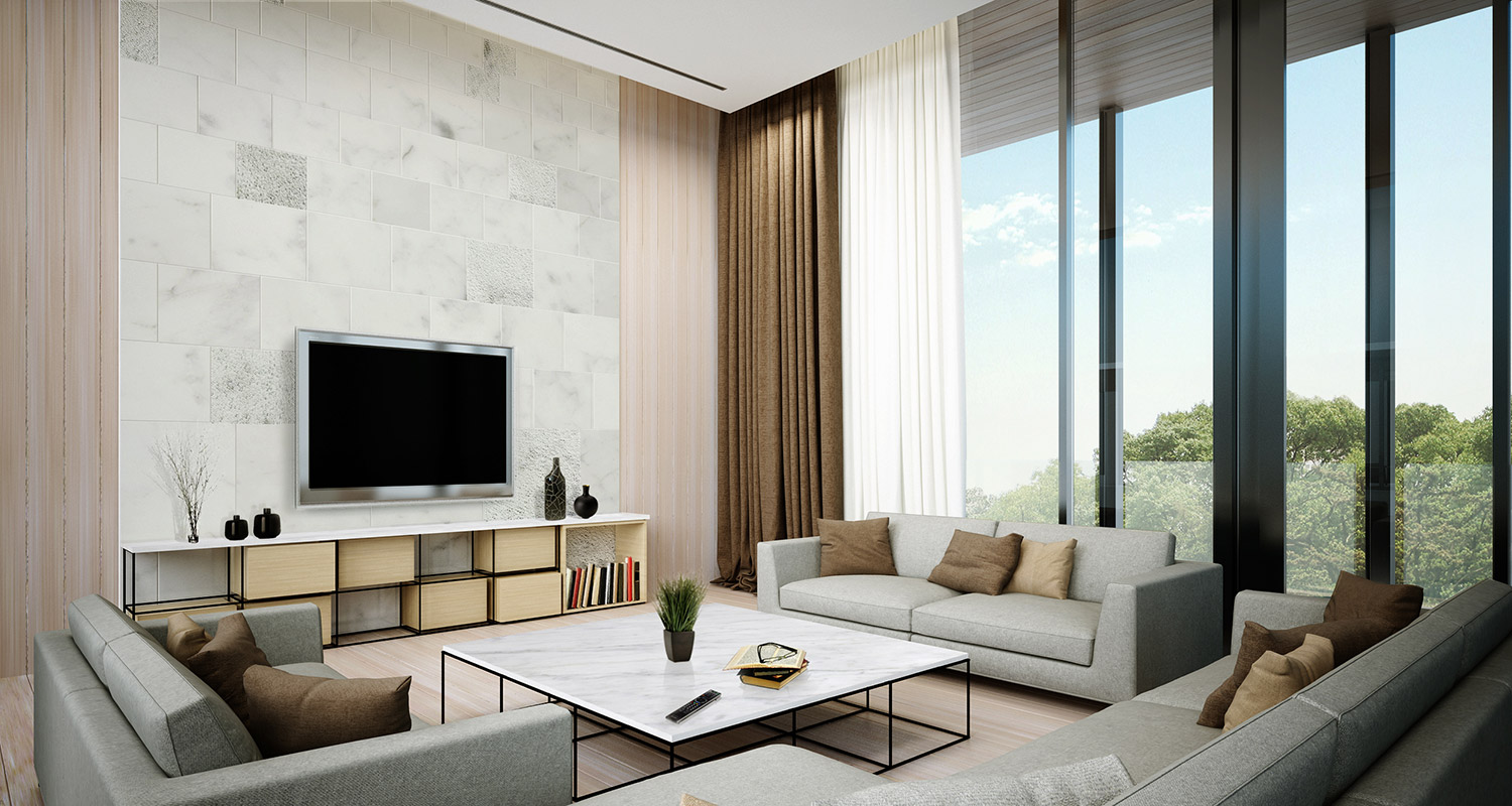 To enhance the expansive nature of the villas, sleek steel columns are positioned every 2.5 meters around the perimeter, allowing the space inside to be completely column-less, as the colonnade gives the appearance of being vertical louvers rather than solid structure.