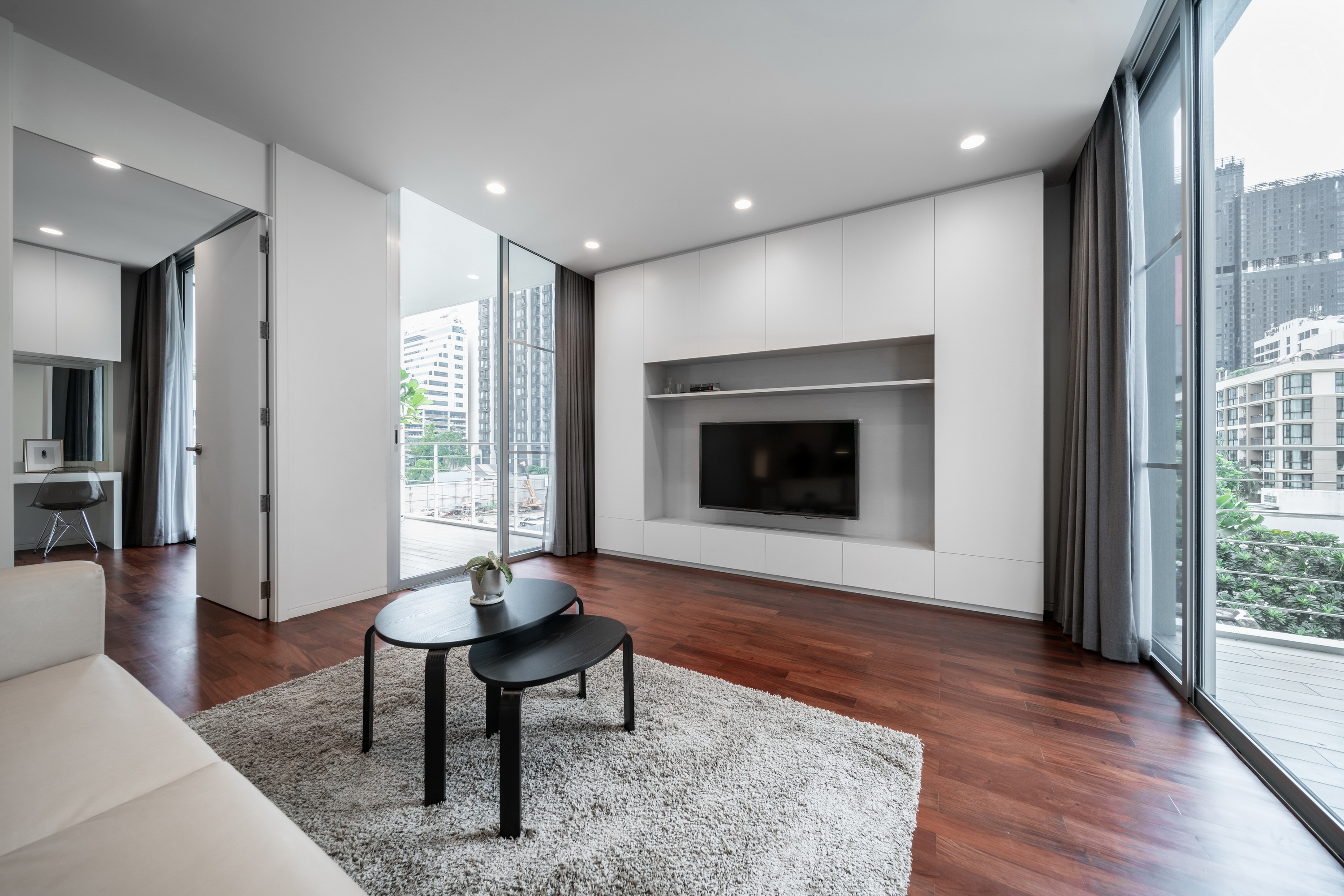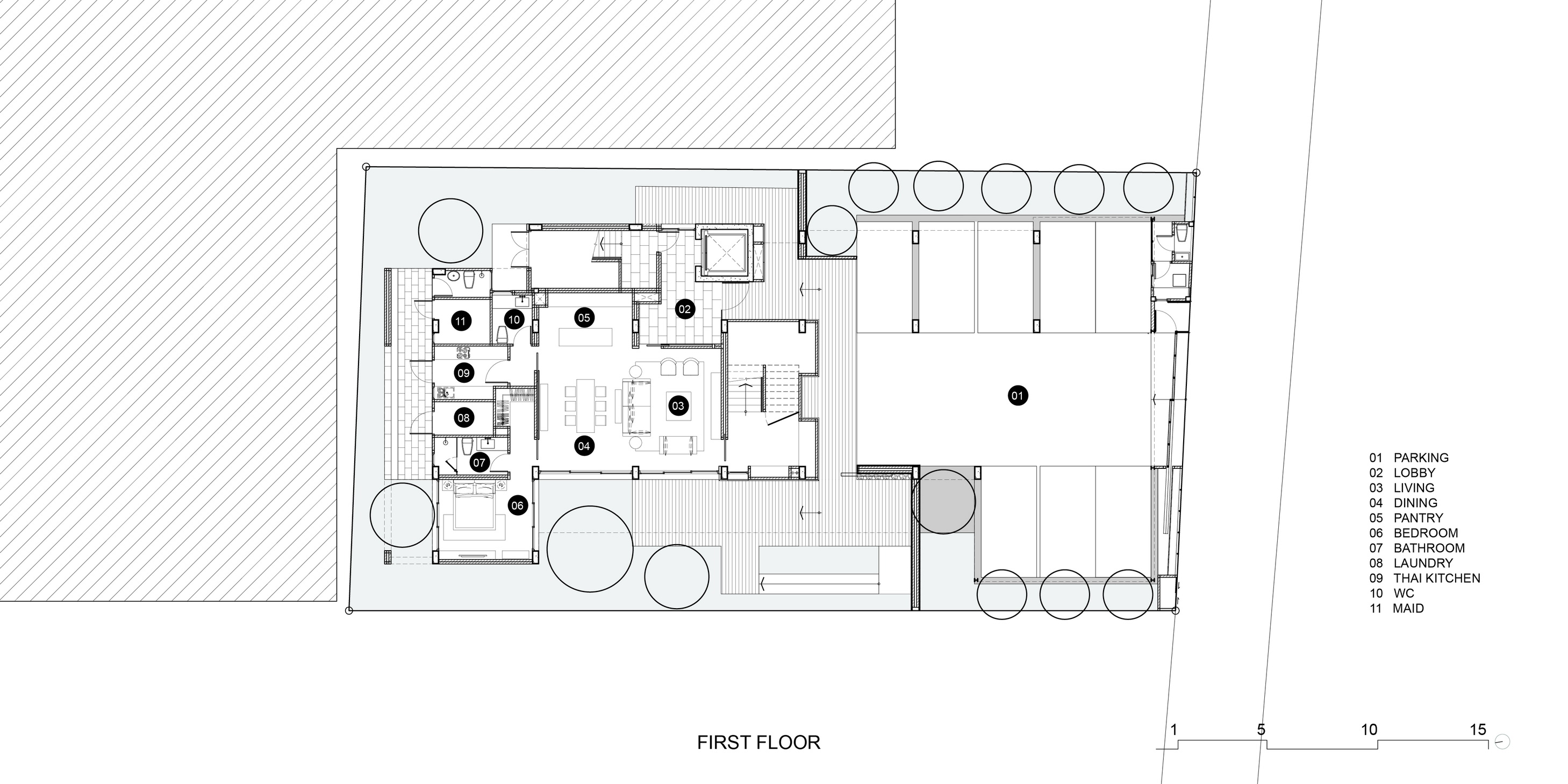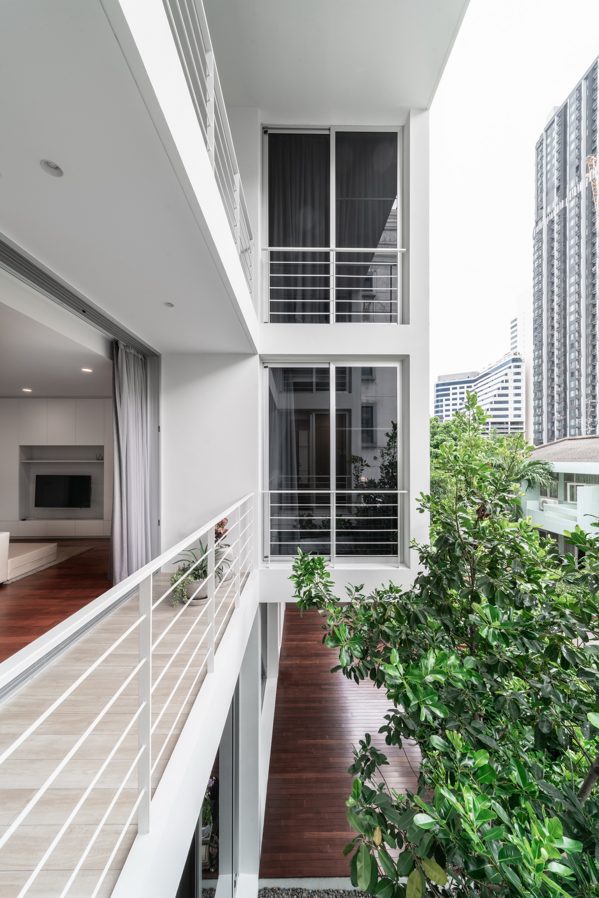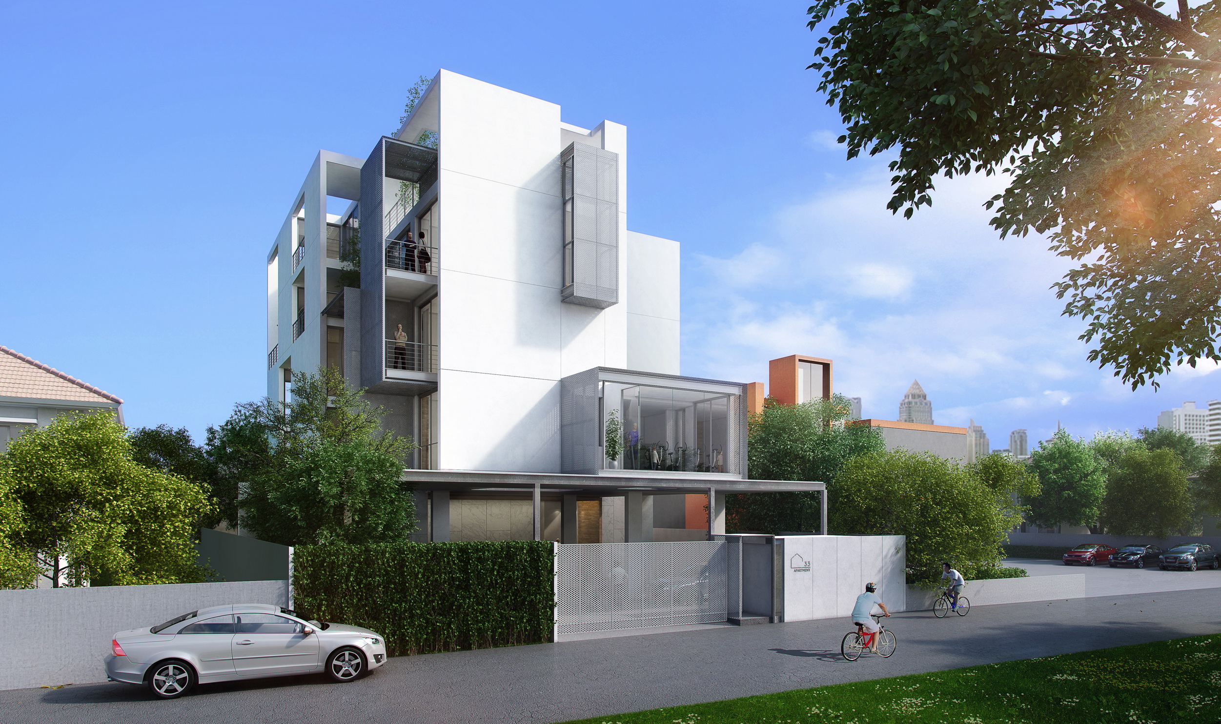 Baan 33 Apartment began as an architectural design experiment of the spatial relationship between a mixed programmatic requirement of a six-bedroom private residence and four service apartment units, its urban conditions, and nature.