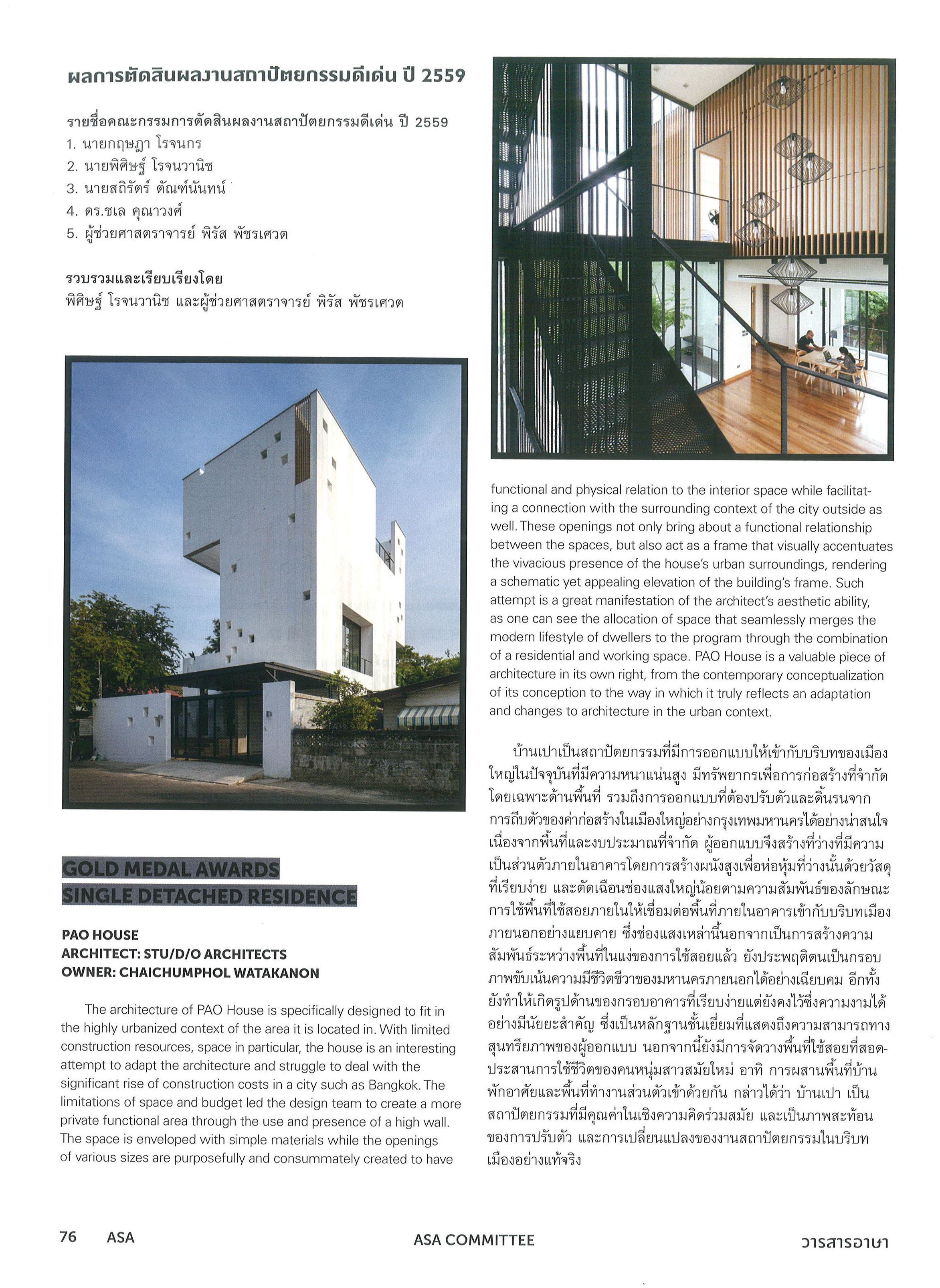 Aperture House got a comment from the Judges of “2016 ARCHITECTURE DESIGN AWARDS”,  ASA jounal.